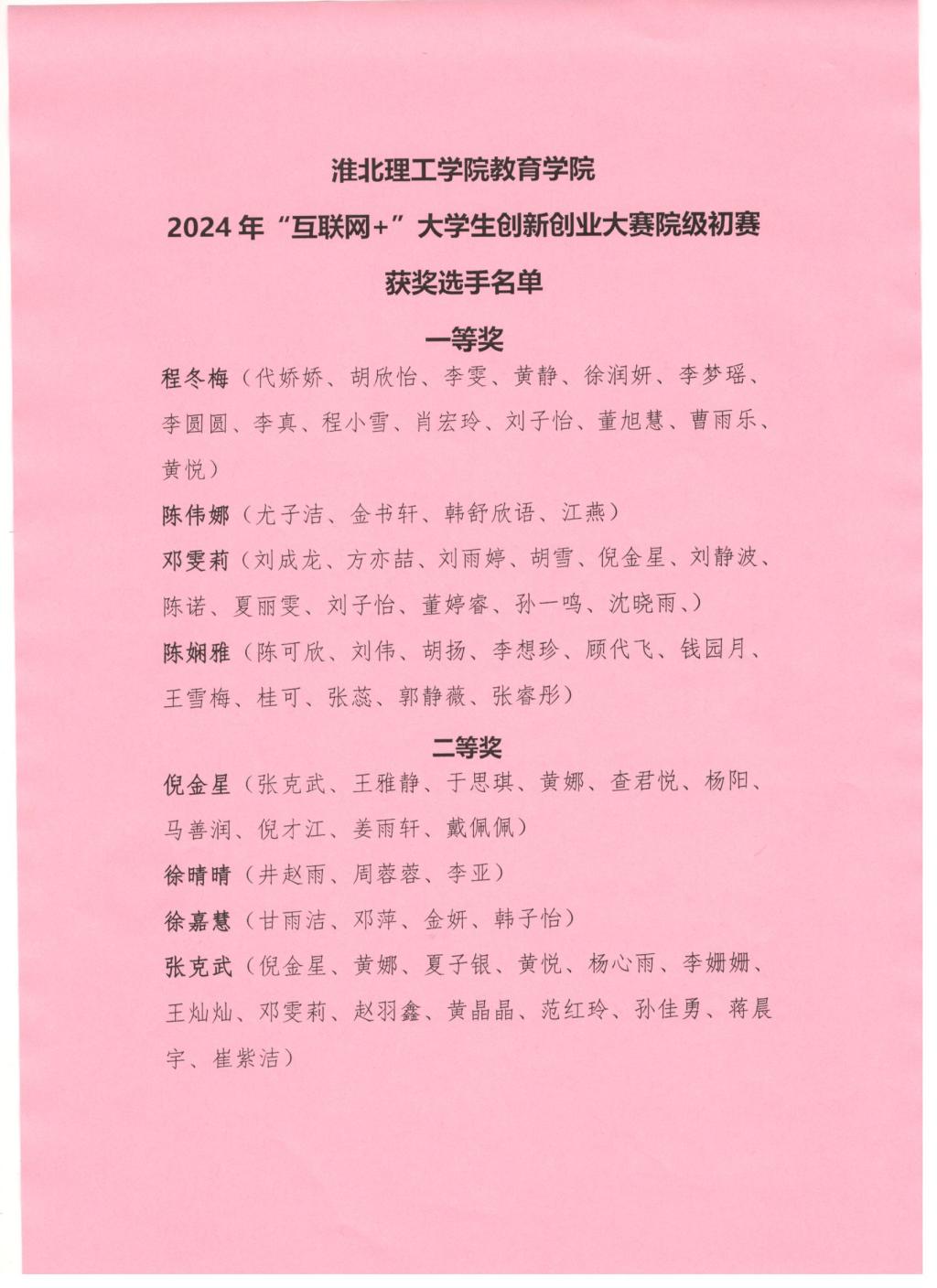 世界杯官网2024年“互联网+”大学生创新创业大赛院级初赛获奖选手名单