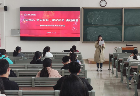 三是压实在校同学的校园安全责任。学院针对学校近期出现的个别同学违反校纪校规翻越学校围墙现象,在全体学生中开展了“遵守校纪校规再承诺”的主题班会宣讲签名活动,辅导员深入学生班级讲解“为什么要坚持防控”、“怎样做好防控”等问题,让同学们从内心真正理解防控的措施与要求,在行动上自觉按照学校要求做好各项防控工作,特别强调不允许任何人私自翻越围墙,如有违反,将严肃处理。同学们都在承诺书上签名确认。