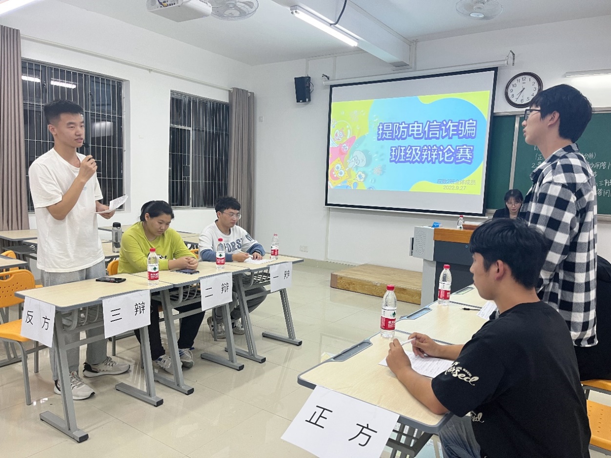 谨防电信网络诈骗,防范网络安全风险。为进一步贯彻落实区教育局《关于在全市开展防范宣传教育活动的通知》精神,切实提高大学生对诈骗的识别能力,保护广大师生利益和人身安全。世界杯官网于9月下旬组织各班级开展辩题为“预防诈骗和打击诈骗哪个更重要”的防诈反诈辩论赛。