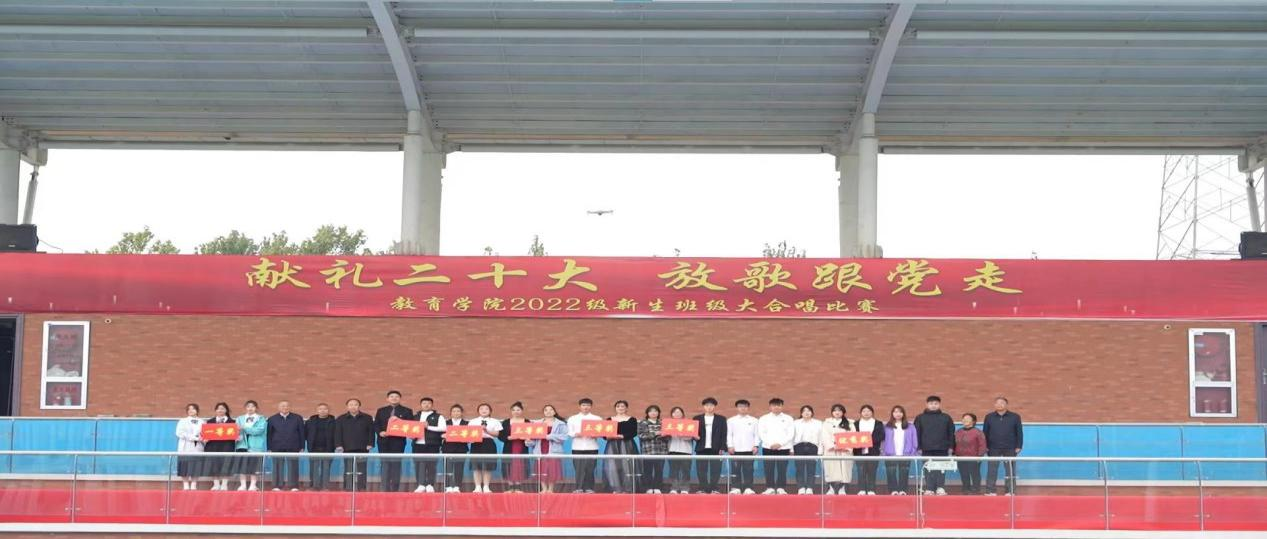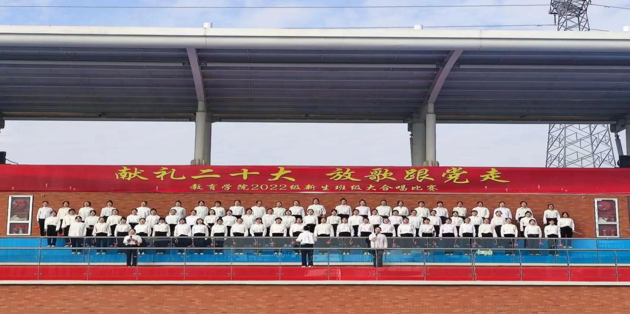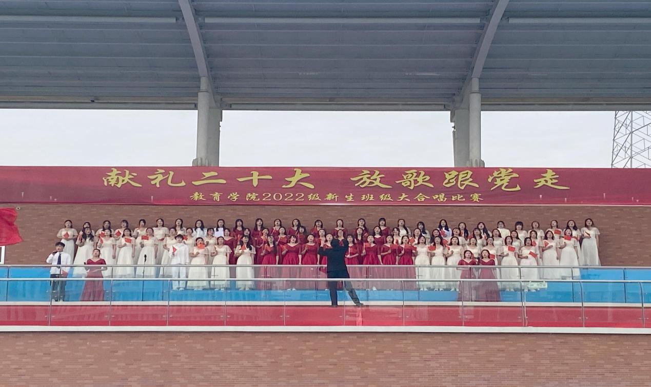 在全国上下认真学习贯彻党的二十大精神之际,世界杯官网为坚定青年大学生永远跟党走的理想和信念,引导学生赓续红色血脉,厚植爱国情怀,于11月6日上午在校户外操场举办了“献礼二十大,放歌跟党走”2022级新生班级大合唱比赛,莅临比赛现场的有学校副校长汪建利、教务处处长陈国平、后勤保卫处处长程坚、办公室副主任陈杰、世界杯官网院长王家云、副院长孟向红,校团委书记刘帅克、学生处老师、世界杯官网全体辅导员以及2022级49个班级的同学,学院2021级辅导员担任了本次大合唱比赛的评委。