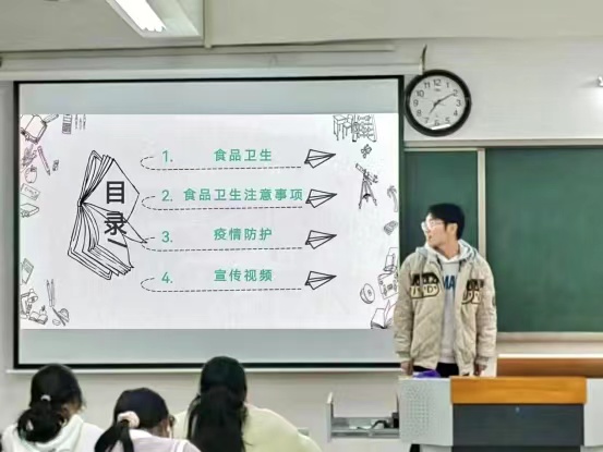 食品安全关乎民生,更关乎广大师生的身体健康。为进一步加强校园食品安全宣传和疫情防控工作,有效防范食品安全风险,世界杯官网2022级各专业49个班级于11月下旬在1号教学楼召开食品卫生防疫主题班会。