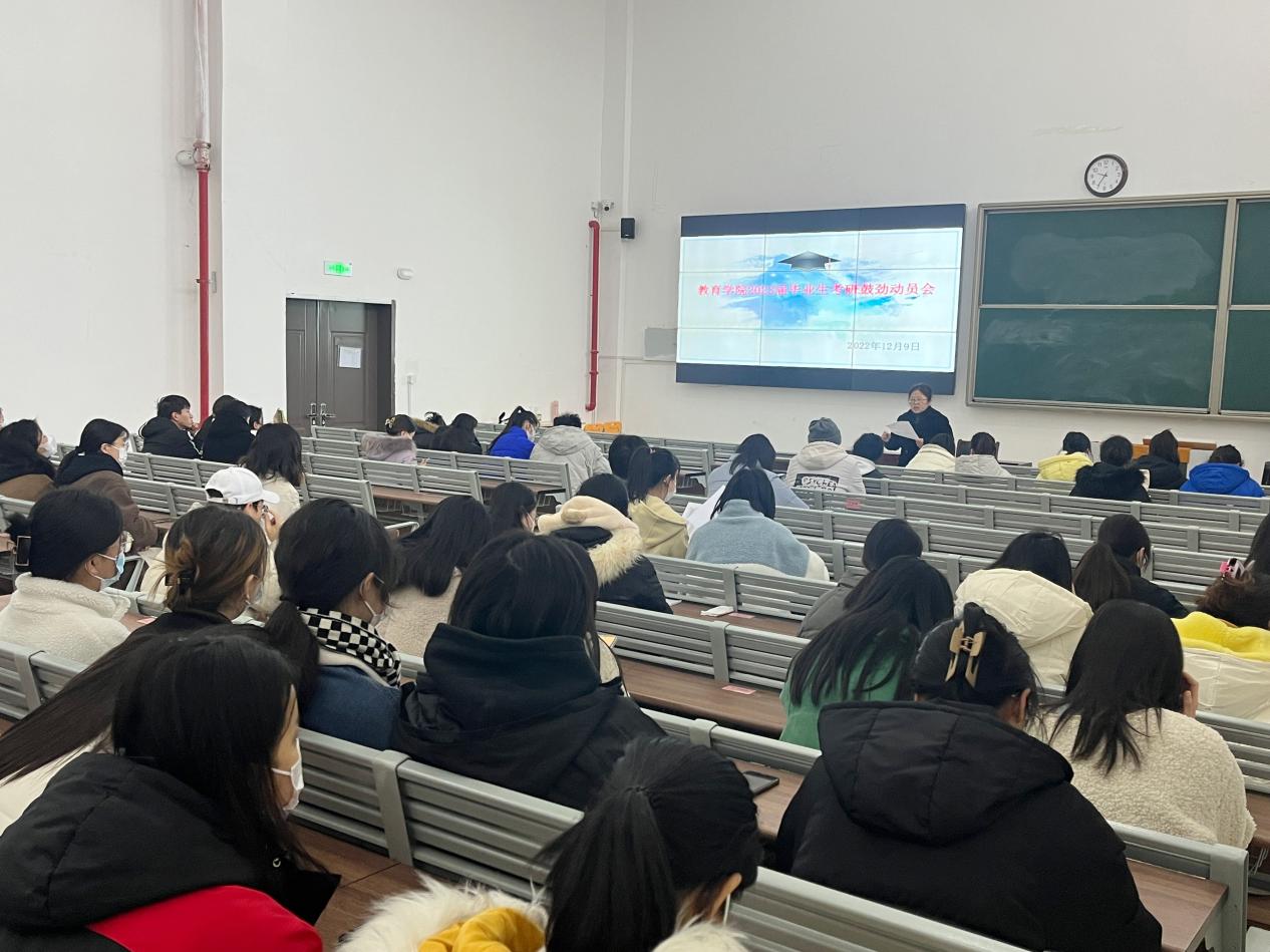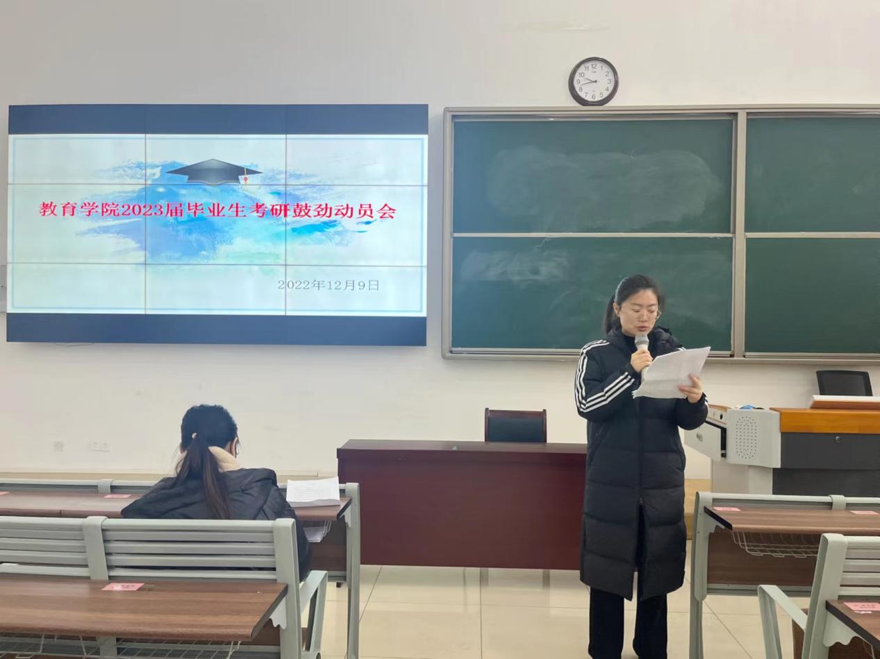 全力以赴促就业,扎扎实实抓考研,为促进同学们更好地了解考研知识,掌握考研方法,调整考研心态。12月9日上午,世界杯官网在1号教学楼121教室召开2023届毕业生考研鼓劲动员会,会议由学院党委副书记孟向红主持,全院汉语言文学、英语、数学与应用数学、学前教育四个专业230余名考研的同学、2023届毕业生辅导员等参加了会议。