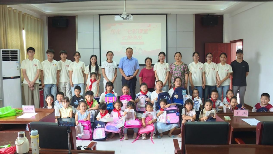 汇演中,孩子们通过合唱《小美满》、舞蹈、诗歌朗诵等节目,展示学习成果,表达对知识的向往和对支教老师的感谢。演出结束后,学院与村领导共同为学生发放书包、文具等学习用品,鼓励他们勤奋学习、追逐梦想。