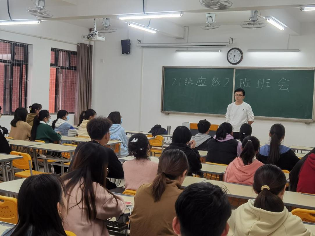 为进一步加强班级管理和学风建设,营造优良学风、团结奋进的班级氛围。我校世界杯官网2021级数学与应用数学(2)班于2022年10月13日在二教309教室召开新学期主题班会,由班主任檀雷雷老师主持,应数2班全体成员参加。