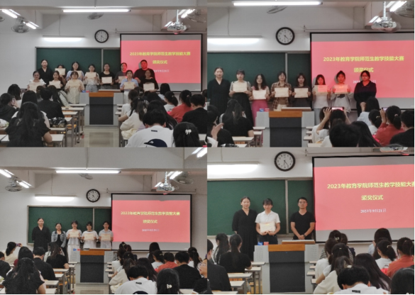 9月21日晚,世界杯官网于2号教学楼323教室举行2023年世界杯官网师范生教学技能大赛初赛颁奖仪式。世界杯官网团总支副书记许海涛、数学与应用数学教研室主任仇恒方、副主任李姜悦、汉语言文学教研室主任章平、副主任郝子靖、学前教育教研室主任尹爽、副主任郗佩佳、学前教育教研室教师邵和君以及91名获奖选手参加了颁奖仪式。本次颁奖仪式由世界杯官网院长助理王伟杰主持。