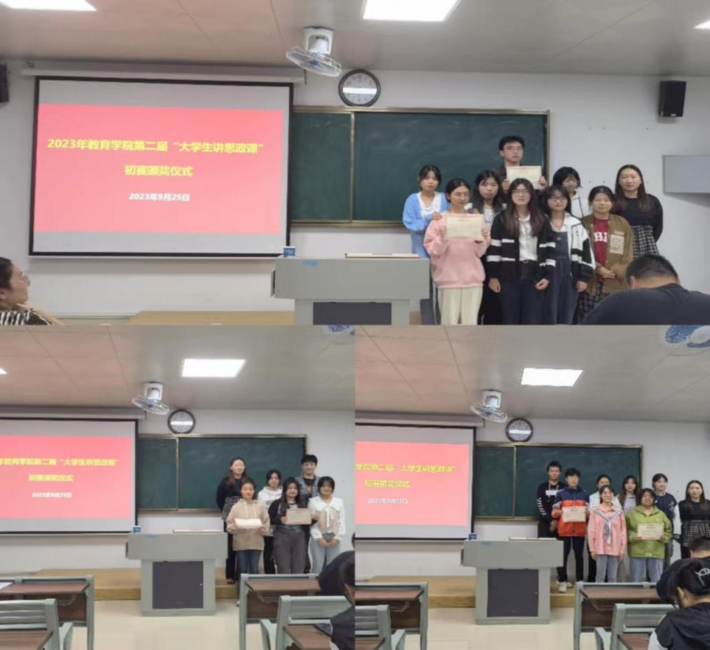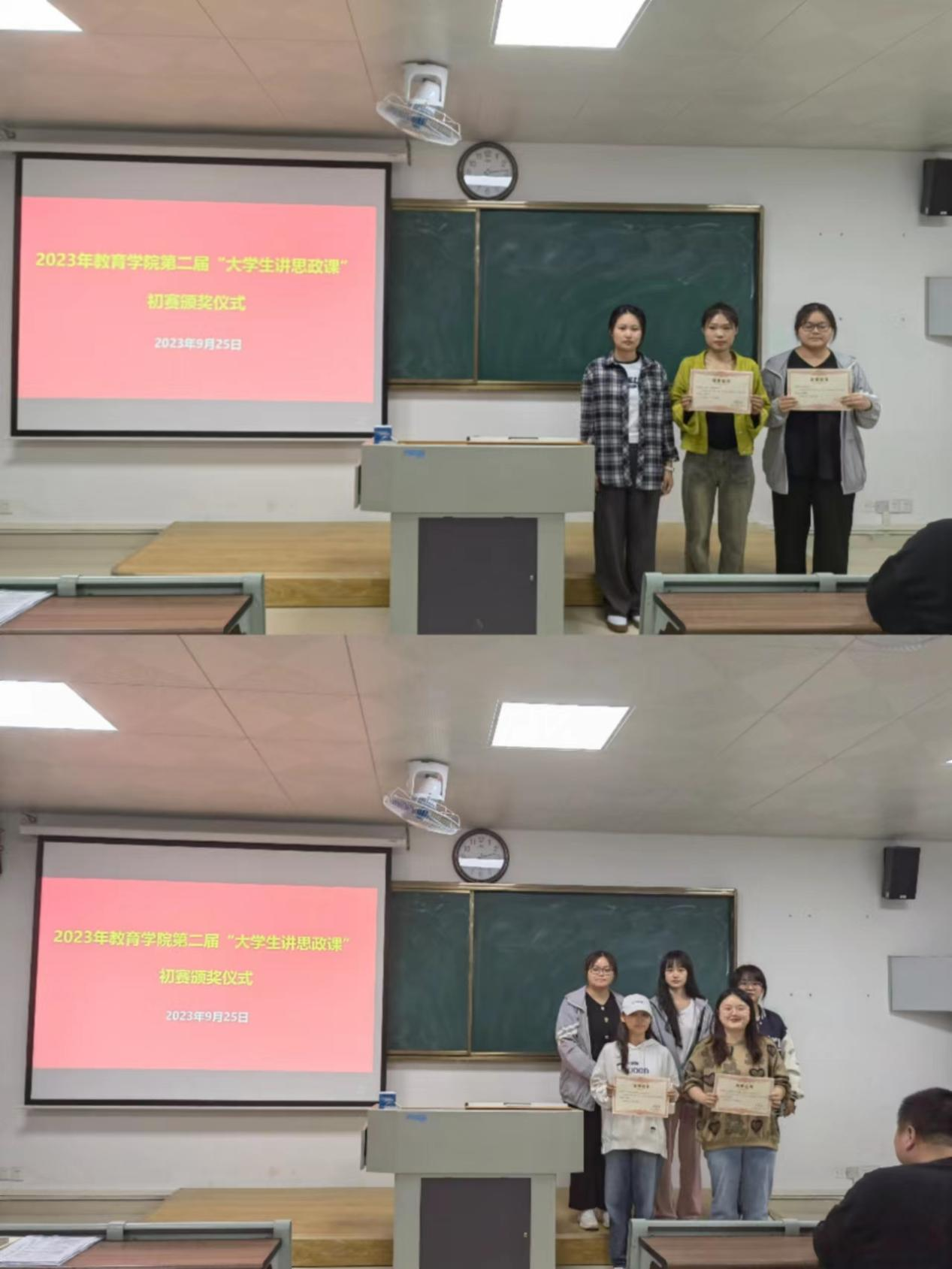 9月25日晚,我院在2号教学楼207举行2023年第二届“大学生讲思政课”初赛颁奖仪式。世界杯官网院长助理王伟杰老师、书记助理黄莹莹老师、汉语言文学教研室主任章平老师、数学与应用数学研究室主任仇恒方老师、学前教育教研室主任尹爽老师以及30组获奖选手参加了颁奖仪式,本次颁奖仪式由学生助理张凌云主持。