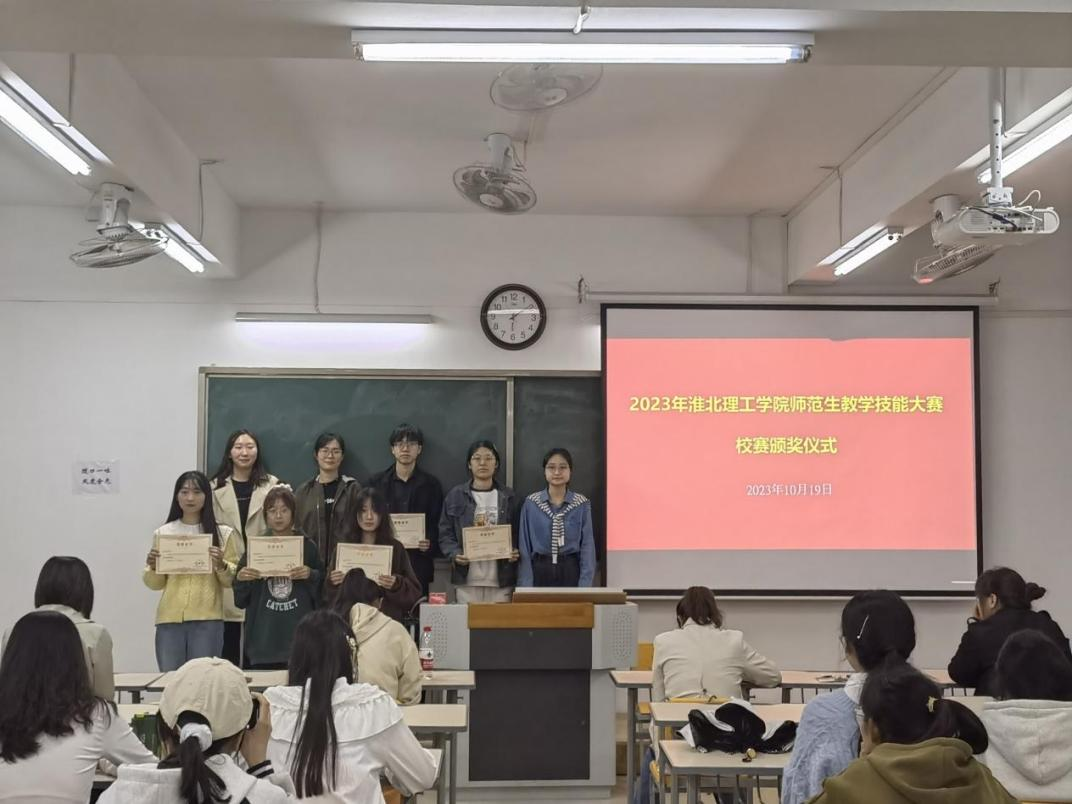 10月19日晚,我院在2号教学楼323举行2023年师范生教学技能大赛校赛颁奖仪式。世界杯官网书记助理黄莹莹老师,数学与应用数学教研室主任仇恒方老师,副主任李姜悦老师,学前教育教研室主任尹爽老师,副主任郗佩佳老师,学前教育教研室邵和君老师以及36名获奖选手参加了颁奖仪式,仪式由世界杯官网院长助理王伟杰老师主持。