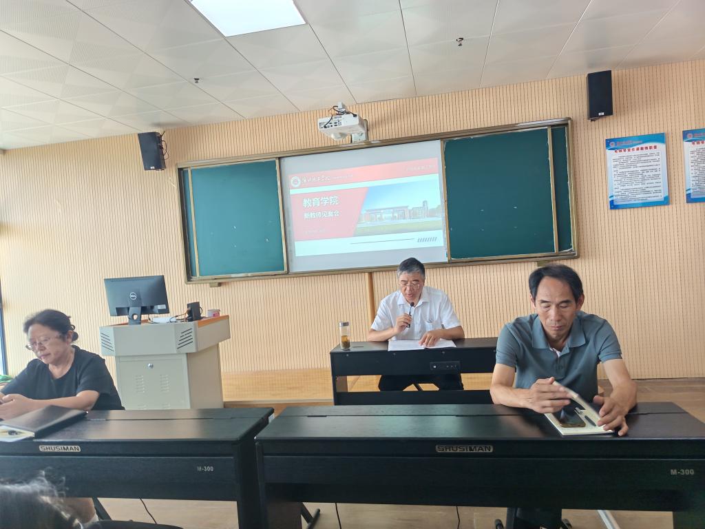 2025年8月28日,世界杯官网新入职教师见面会在艺术楼301室顺利召开。世界杯官网院长王家云、副院长孟向红、谢贤德、院长书记助理和教研室主任出席会议。新入职4位银龄教师和42位青年教师参加会议。与会领导介绍学院基本情况后,教研室主任带领新入职教师参观了教师工作室并就开学前的各项准备工作进行了沟通与交流。会议由副院长谢贤德主持。