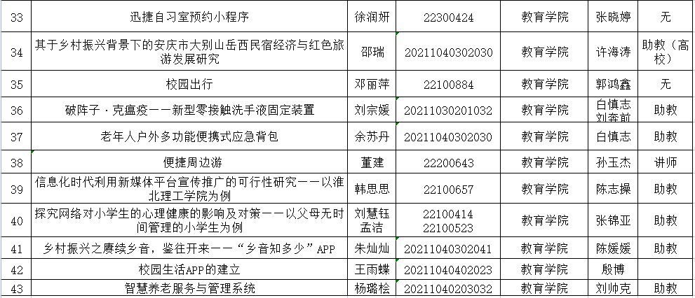 热烈祝贺我院李成城、高微、丁思滢、李静怡、袁荣彬等43名大学生成功获准2022年安徽省大学生创新创业计划项目省级立项。具体详细名单请见附件!