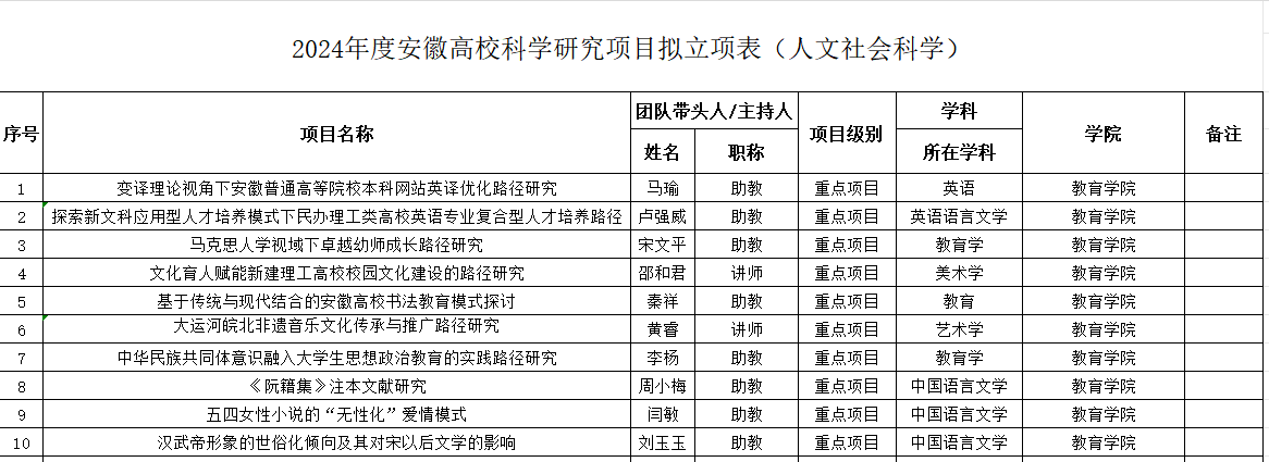 世界杯官网教师获批2024年安徽省高校科学研究重点项目立项