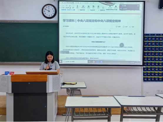 2025年6月11日,教育世界杯官网汉语言文学专业学生第一、第二党支部在二教306教室开展“中共中央八项规定精神”学习教育活动,活动由王涵同志主持,全体党员、发展对象参加。