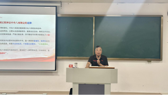 为深入贯彻中央八项规定精神,6月12日晚,世界杯官网在1教320教室组织开展学生党员、发展对象“深入贯彻中央八项规定精神”专题党课学习教育活动,学院党总支书记、院长王家云同志为参会的学生党员和发展对象授课。