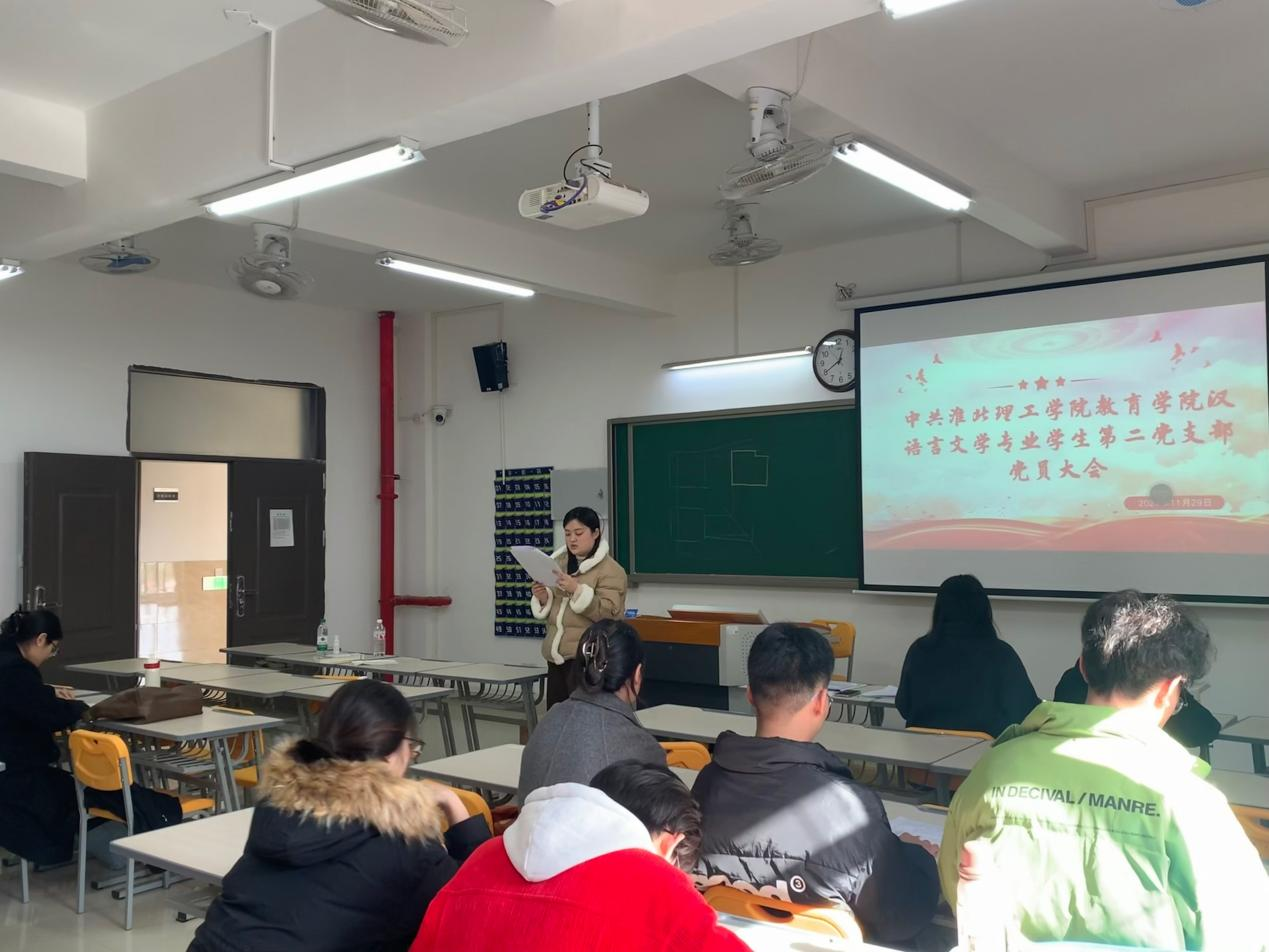 为进一步加强和推进学生党员队伍建设,严格落实党支部发展党员工作,切实提高学生党员的发展质量,增强党员队伍的生机与活力,11月28日中午,世界杯官网汉语言文学专业学生第二党支部在1教308教室召开了接收预备党员大会。会议由党支部书记张颖颖主持,支部全体党员参加。