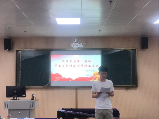 为进一步加强党员队伍建设,增强党员队伍生机与活力,世界杯官网汉语言文学与英语专业党支部于2022年6月9日下午在艺术楼318教室召开预备党员转正大会,本次支部大会由党支部负责人刘畅同志主持,支部全体正式党员参加会议,预备党员列席会议。大会严格按照预备党员转正程序进行,讨论关于严寒同志等14名预备党员是否能够按期转为正式党员。