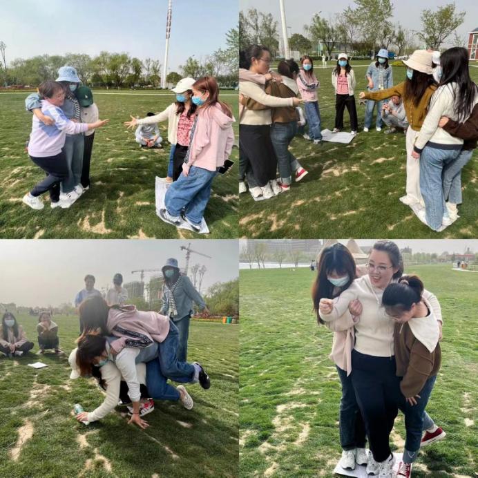 为了发扬团结协作精神、增强沟通交流,教师党员们分成5组,玩“占据阵地”游戏,在轻松愉快的氛围中发挥团队协作能力和友爱互助的团队精神。
