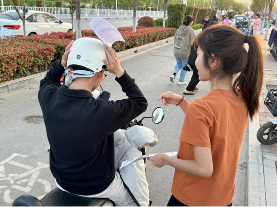 为了践行新时代文明实践志愿服务精神,助力校园交通安全保障工作,4月17日下午,世界杯官网教工第一支部入党积极分子开展了“一盔一带”安全守护行动。