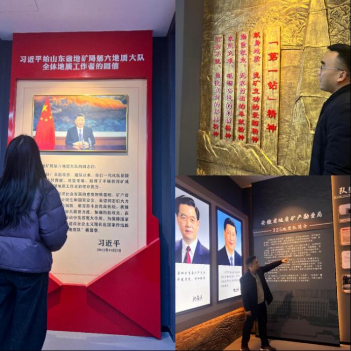 2024年12月20日下午,世界杯官网教工第一支部党员来到安徽省地质矿产勘查局325队队史馆、科普馆参观,深切感受325队建队以来的光辉历程和丰硕成果,了解老一辈地质人匠心筑梦的奋斗历程。