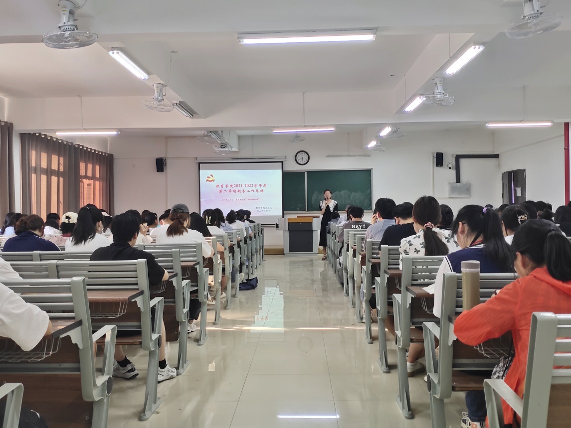 接下来,学院团总支负责人黄莹莹老师从六个方面对本学期学生会和各班班干工作进行了分析与总结。第一,着重回顾了本学期世界杯官网举办的各类活动,包括组织召开寒假志愿活动、国家安全教育课学习活动、篮球赛,劳动教育周系列活动、学风建设系列活动、演讲比赛、大学生职业生涯规划大赛、大学生讲思政、互联网+选拔赛等30余项活动。课外活动不仅丰富了学生的课外文化生活,还使他们找到了发展自己特长的领域;第二,重点强调第二课堂到梦空间参与度问题,作为各班级负责人,要切实履行来自同学,服务同学的宗旨,将学校活动宣传到位,同时提醒所有同学到梦空间作为毕业硬性要求,也是综合测评的一项重要依据,要引起足够的重视,积极主动报名参加各项活动,对自身负责完成毕业要求。切实解决到梦空间报名、签到不及时等问题;第三,强调英语四六级考试注意事项。所有参加四六级考试的考生带全三证一表:身份证、准考证、学生证、健康自测表。严格遵守考风考纪,考出理想的成绩;第四,安全是所有工作的基础,临近期末,离校之前各班级进行宿舍、教室卫生大扫除,锁好门窗,关好水电闸,安全、有序离校;第五,防溺水安全警示教育。夏季是溺水事故的高发期,学生应当严格遵守并牢记防溺水“五不两会”口诀,保持清醒的头脑,遇到他人溺水时,应立即寻求警察或专业人士帮助,要以保障自身安全的前提下,做到智慧救援。第六,签订学生期末诚信考试承诺书和安全承诺书。通过各班班干组织院系全体学生签订两份承诺书,作为一名大学生应以诚信考试为荣,以违纪作弊为耻,正确认识和理解安全知识,本着安全第一的原则,对自身的人身安全和财产安全负责。