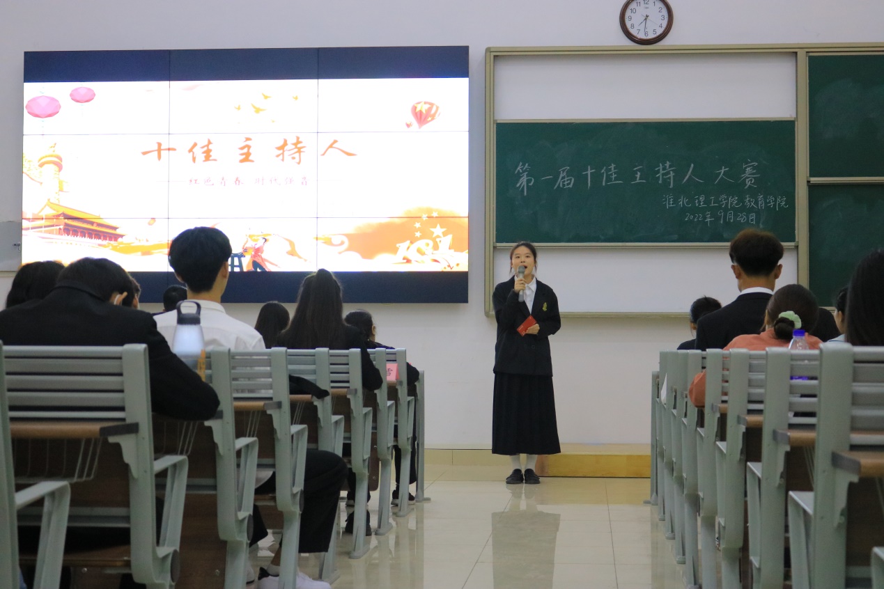 灿烂的笑容,青春的面孔,激情洋溢着的智慧在舞台上尽情绽放。9月28日晚,世界杯官网在1教121室举行“红色青春,时代强音”第一届十佳主持人决赛。学院分管副书记孟向红及部分辅导员老师参加了本次比赛并担任评委。