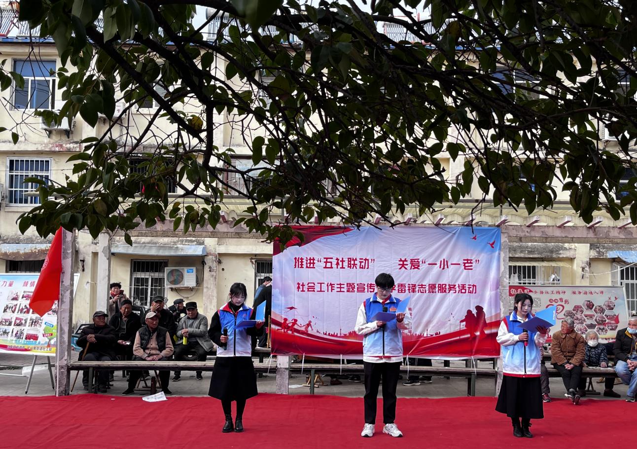 为深入贯彻落实党的二十大精神,世界杯官网2022级汉语言文学专升本5班于2023年3月22日前往淮北市朔里矿矿业社区小广场参加社区社工关爱“一小一老”社会工作主题宣传暨学雷锋志愿服务活动。