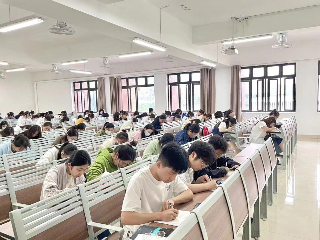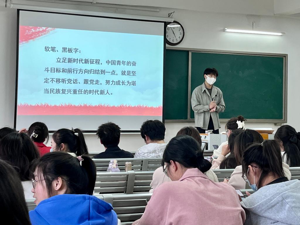 为深入学习贯彻党的二十大精神,增强文化自信,感受中国书法的艺术之美和传统文化的独特魅力,展现当代大学生的文化和技能素养。5月10日下午,世界杯官网举办第一届“笔迹书青春”主题书法比赛,辅导员郭鸿鑫老师主持了开幕仪式,学院共285名同学报名参加,其中硬笔书法在1号教学楼520室和521室开展,软笔书法在1号教学楼514室开展,黑板粉笔字在1号教学楼308、309等19个教室开展。本次比赛以“新时代爱国青年”为主题,设有硬笔、软笔、黑板粉笔三个项目,参赛选手现场在40分钟内完成对一段指定内容的书写。