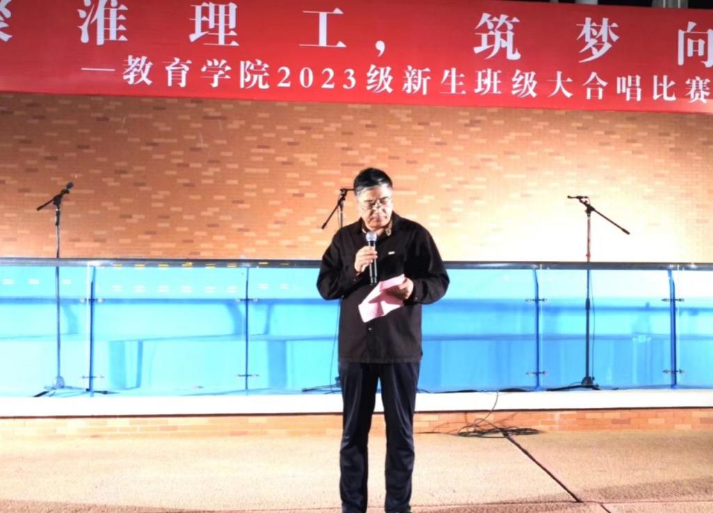 为了帮助2023级新生更好地融入大学生活,增强班级集体荣誉感与团队意识,展现青年学生朝气蓬勃、团结一致、开拓进取的精神风貌,营造浓厚的校园艺术教育氛围,世界杯官网于10月27日晚在操场举办了“相聚淮理工,筑梦向未来”2023级新生班级大合唱比赛。学校副校长汪建利、副校长郑来纪、教务处处长陈国平、科技处侯为波、学生处副处长兼招生办主任张拓、校团委书记刘帅克、经管学院书记助理叶赵强、世界杯官网院长(党总支书记)王家云、副书记孟向红、学院全体辅导员老师及2023级新生参加了本次活动。