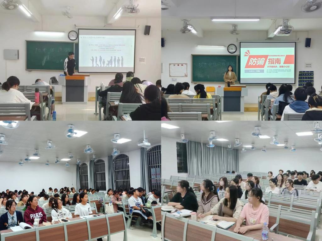 主题教育活动由各班级辅导员老师主持,老师们结合近期校园电信诈骗的特点,以PPT形式再次向同学们普及了什么是电信诈骗、电信诈骗的特点是什么、诈骗分子如何利用人们的心理弱点以及同学们应该如何防范应对。活动中同学们再次学习了《防范电信网络诈骗宣传手册》,进一步增强识骗防诈的能力,掌握应对电信网络诈骗方法。