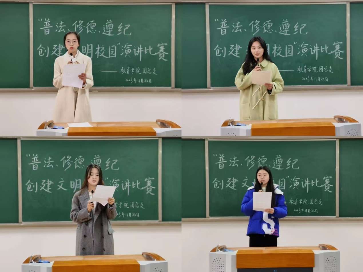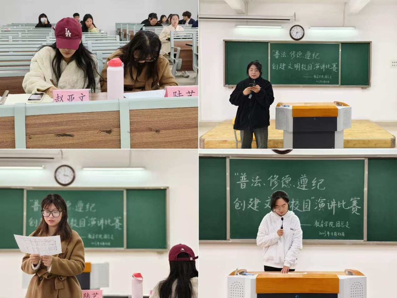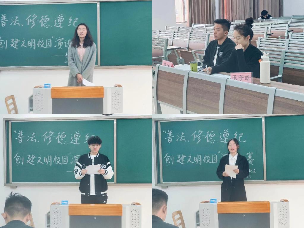 为落实学校《关于开展2023年“普法、修德、遵纪,创建文明校园”专项活动的通知》精神,提高同学们的法律意识,大力弘扬法治精神,创建学风校风优良的文明校园,世界杯官网于11月22日下午在2号教学楼412、413、414、415、416教室分别开展以“普法、修德、遵纪,创建文明校园”为主题的演讲比赛。学院2023级辅导员老师担任评委。