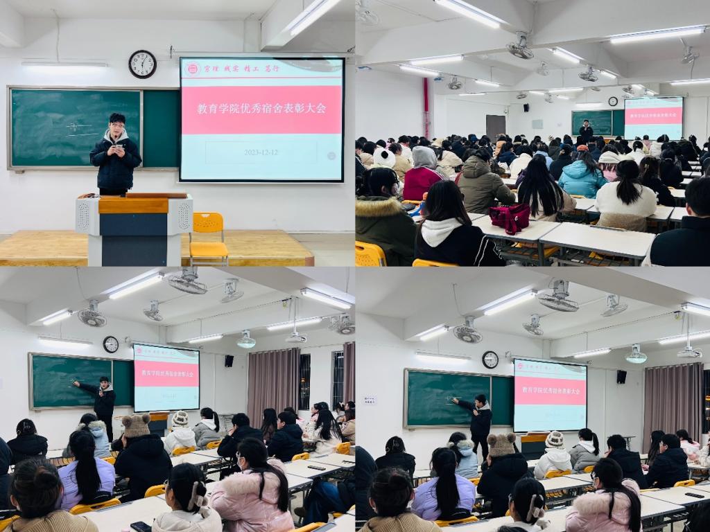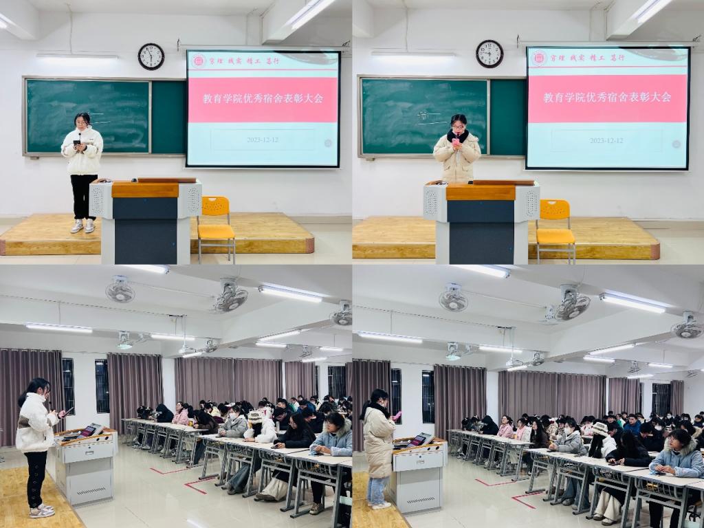 表彰会上,许海涛通报了本学期学院学生寝室“安全文明”创建情况。他说,本学期以来学院通过举办“寝室文化节”系列活动、辅导员(班主任)定期深入学生寝室检查寝室安全卫生状况、随机抽查学生是否晚归、寝室安全隐患排查等活动,促进了学生“安全文明寝室”的创建,涌现出一批学习勤奋、团结互助、寝室内文明整洁的先进寝室集体,学院结合学校对学生寝室的抽查情况,评选出139个“安全文明宿舍”进行了表彰。随后,他宣读了学院的表彰决定。