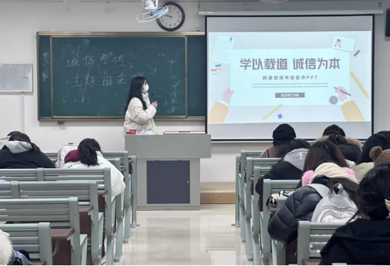 会议上,辅导员们结合班级情况,利用PPT为同学们讲解了诚信考试的重要性,指出诚信是中华民族的传统美德,也是每个学生应当遵守的行为准则。考试是检验同学们学习成果的重要方式,同时也是检验同学们道德品质的试金石,引导同学们正确看待期末考试。辅导员们告诫大家,在考试中,诚信不仅是对自己学业的尊重,更是对他人努力的认可,只有坚持诚信原则,才能树立良好的学风、考风,促进公平竞争。倡导同学们以实际行动践行诚实守信,把考试作为检测学习成效的重要途径,达到以考促学、以考促行。