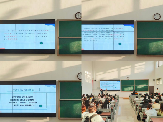 随后,郭鸿鑫老师围绕议题强调了学法懂法、明理智信的重要性,向大家说明代刷网课、论文买卖、利用假实习证明签订劳务合同等违法乱纪行为的不正当性和处罚后果的严重性,他指出“要抛弃侥幸心理,拒绝诱惑,明辨是非,这样‘倒霉’就轮不到我们。”呼吁大家做守法守纪的优秀青年。并以本次会议为契机,他希望同学们能够认真复习,诚信对待即将到来的期末考试,并为下学期的教师资格证考试和考研升学规划做好准备。