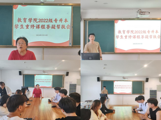 为做好2022级专升本学生重修课学习心理建设,引导学生理性对待重修,力促学生顺利完成学业。2024年5月14日中午,世界杯官网在艺术楼208教室组织了“2022级专升本学生重修课程答疑帮扶”活动,学院副书记孟向红、院长助理米玉、团总支副书记许海涛、各专业教研室主任(副主任)及相关课任老师参加了帮扶答疑活动。