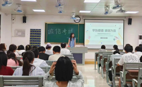 为有效维护公平公正的考试环境,端正考风考纪,强化学生诚信自律意识。6月5日,世界杯官网各班级在1号教学楼召开“诚信考试教育”主题班会,各班级辅导员老师到班主持,全体同学参加本次会议。
