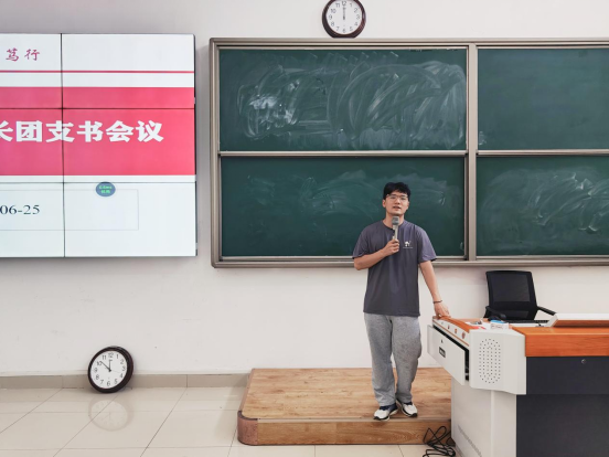 22级英语3班班长张克武、23级汉文8班团支书王雨露分别在会上做了交流发言,分享了班级和团支部的工作经验。