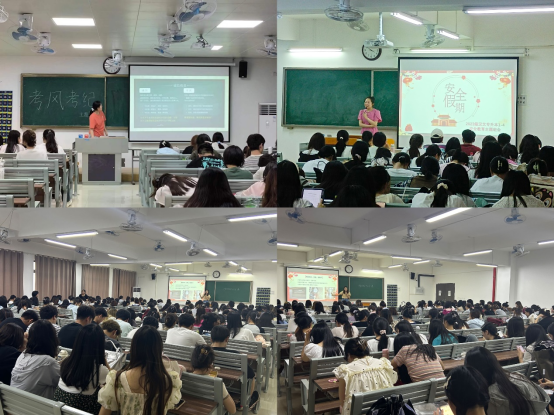 辅导员老师们在进行“期末诚信考试”教育的同时,对即将到来的暑期安全工作进行了布置提醒。一是提醒同学们注意个人安全问题,遵守交通规则,远离水域地区,谨防溺水;二是提醒同学们提高防范各类电信网络诈骗,增强自我保护意识和防范能力,保护自身财产安全;三是慎重选择假期兼职,谨防误入传销组织;四是离校前将宿舍进行一次自查,水电线路是否完好,开关是否能安全关闭,门窗是否完好等,并妥善保管好贵重物品,防止失窃、火情的发生;五是假期中,妥善安排好自己的学习、生活,积极参加假期社会实践活动,认真复习考试不合格的课程,准备开学后的补考,同时,特别强调要严格执行学校的各项规章制度,按时返校。