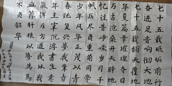 参赛者们通过各自擅长的书写方式,展示了自己对书法艺术的独特理解和深厚功底。参赛者的作品或苍劲有力,或飘逸灵动,或端庄大气,一笔一画间尽显对书法艺术的热爱与执着。楷书端正工整,如正襟危坐的君子;行书流畅自然,似潇洒不羁的侠客;草书则奔放豪迈,仿若天马行空。无论是软笔还是硬笔书法,均展现出了学生极高的书法水准和独特的艺术魅力。经评委老师们的认真评选,最终评出毛笔一等奖4名、二等奖3名、三等奖4名;板书一等奖22名、二等奖35名、三等奖48名;硬笔一等奖23名、二等奖42名、三等奖70名。评委老师们对这些获奖作品给予了较高评价,这些作品不仅展现了同学们汉字书写的笔法、结构、布局等方面的书法技艺,更体现了他们对书法艺术的热爱和追求。