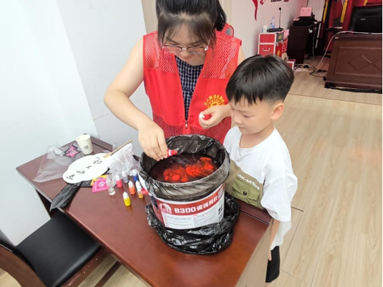 7月3日,实践队在港利社区开展了青少年红色启蒙“童心向党”实践活动。活动形式丰富多彩,首先通过宣讲生动的红色故事,队员们将淮海战役中的英雄事迹和人民群众的伟大力量娓娓道来,孩子们听得聚精会神,眼神中充满了对英雄的崇敬。随后的互动问答环节中,孩子们积极回答问题,展现出对红色知识的浓厚兴趣。最后的非遗文化体验——传统漆扇制作,更是让孩子们沉浸其中。他们亲手绘制漆扇,感受传统文化的魅力,同时也将红色元素融入到作品中,用独特的方式表达对党的热爱和对革命先辈的敬意。