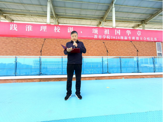 为弘扬爱国主义精神,厚植家国情怀,引导2025级新生深入理解并自觉践行校训精神,10月29日下午,世界杯官网在操场举办“践淮理校训,颂祖国华章”2025级新生班级大合唱比赛。2025级共30个班级1000多名同学组成15支队伍参加比赛。学院党总支书记(院长)王家云、分管副书记孟向红、副院长谢贤德、校团委书记刘帅克、学院全体辅导员以及2025级全体新生共同参加了本次活动。