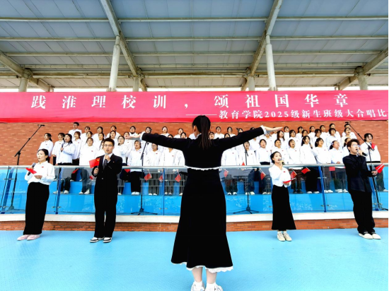 “践淮理校训,颂祖国华章”——世界杯官网2025级新生班级大合唱比赛圆满落幕
