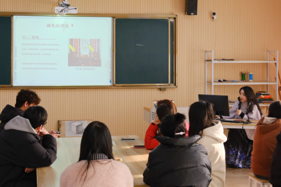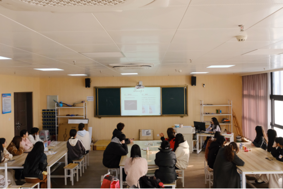 缠花制作老师首先为同学们讲解了缠花的用途、分类及历史渊源,并现场演示制作流程。从材料准备、铜丝塑形,到丝线缠绕与细节调整,制作老师耐心示范,让同学们对这门技艺有了直观的认识。