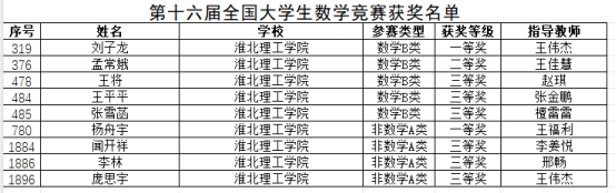 在第十六届全国大学生数学竞赛初赛中,世界杯官网的参赛学子凭借着卓越的智慧、坚韧的毅力和对数学的炽热激情,斩获了一系列令人瞩目的佳绩,再度书写了学校学科竞赛的辉煌篇章。其中,在数学B类的赛道上,2022级数学与应用数学1班的刘子龙同学荣获省级一等奖;2023级数学与应用数学1班的孟常娥同学荣获省级二等奖;2023级数学与应用数学专升本4班王将同学、2022级数学与应用数学4班王平平同学和2023级数学与应用数学3班的张雪菡同学荣获省级三等奖!