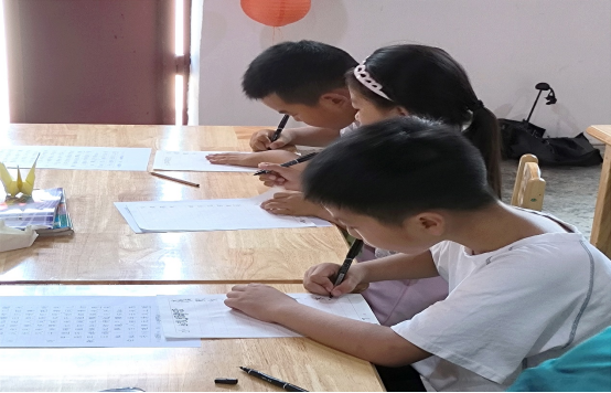 支教实践团开展硬笔书法课程。硬笔书法课上,支教实践团成员展示了自己书写的《水调歌头·明月几时有》书法作品,指导孩子们进行临摹。在支教实践团成员的悉心指导下,孩子们认真书写,学习书法的基本技巧,并深入了解诗歌的内容和情感。