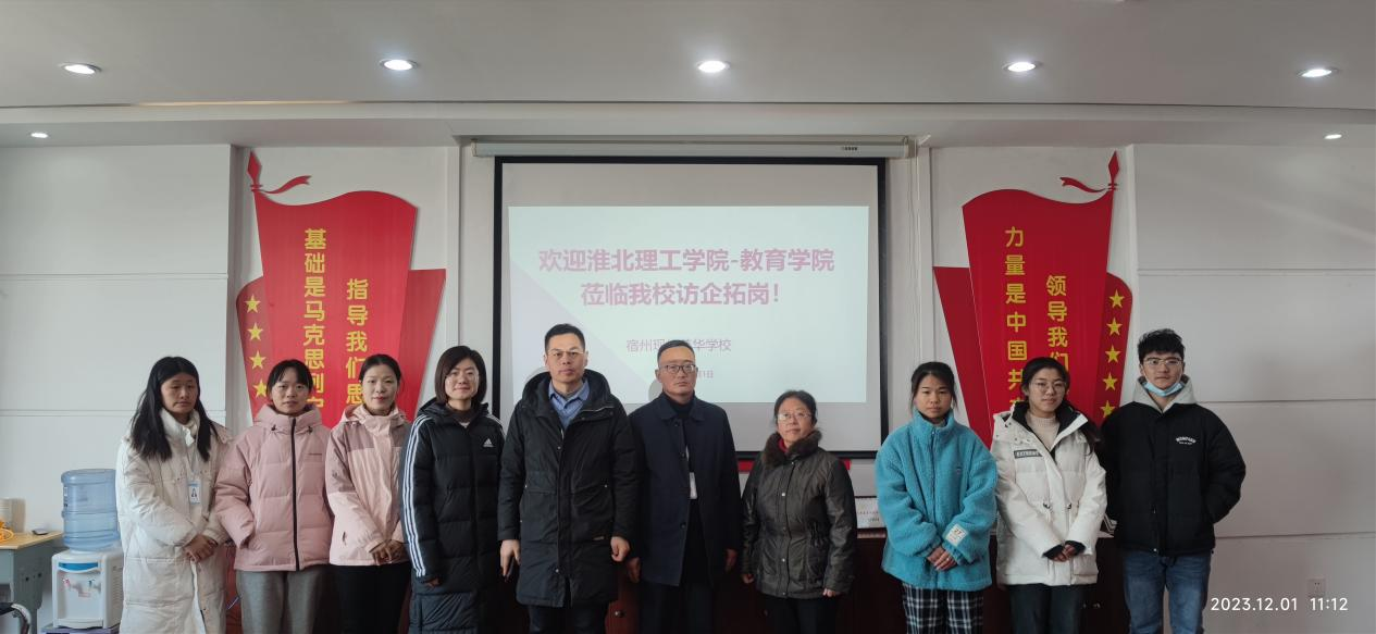 为了加强校地交流合作、拓展毕业生实习和就业渠道,12月1日,世界杯官网分管副书记孟向红、书记助理黄莹莹、团总支副书记许海涛、2024届毕业班辅导员任子慧,前往宿州现代英华学校开展访企拓岗调研活动。